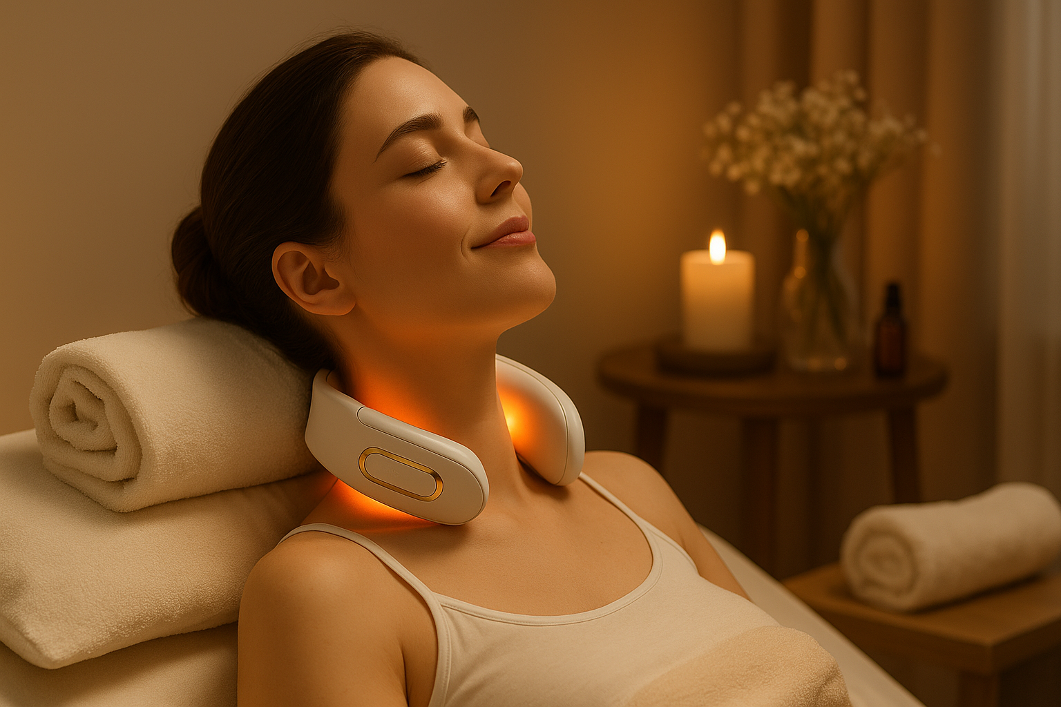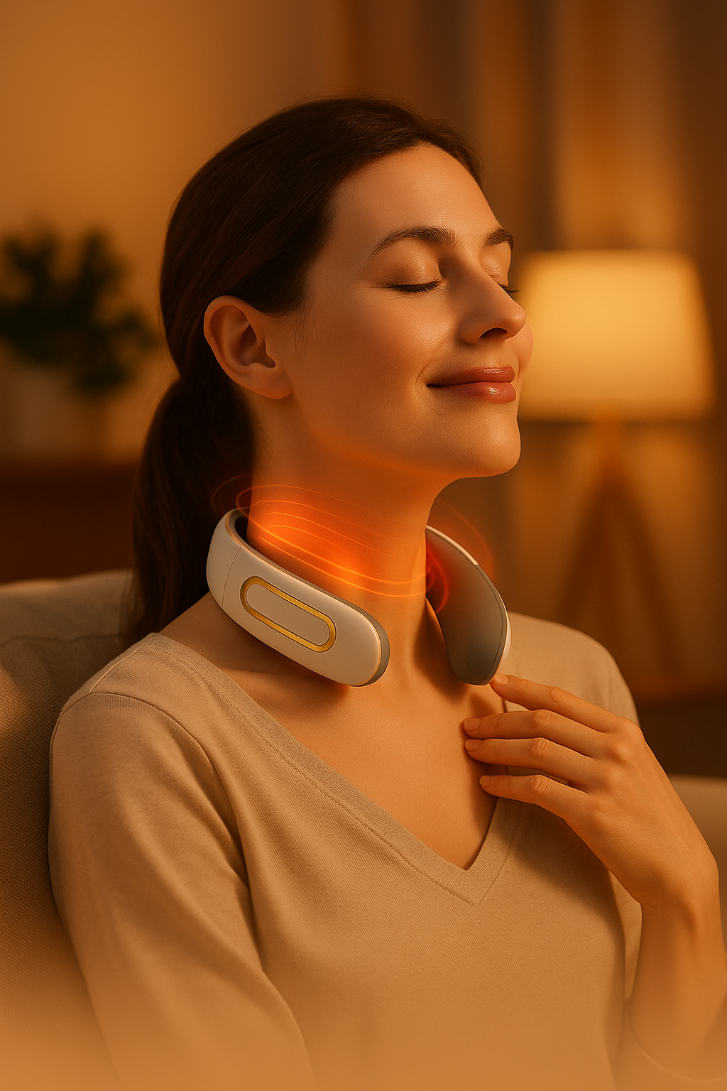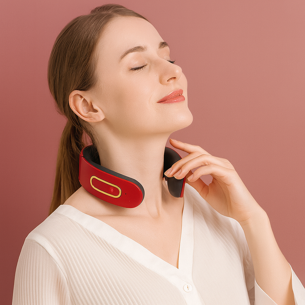 Experience the soothing comfort of smart neck therapy designed to melt away tension and stress. This sleek, modern device combines gentle heat and targeted pulse technology to relieve stiffness and promote better circulation. Perfect for home, office, or travel — a touch of luxury that fits right around your neck.