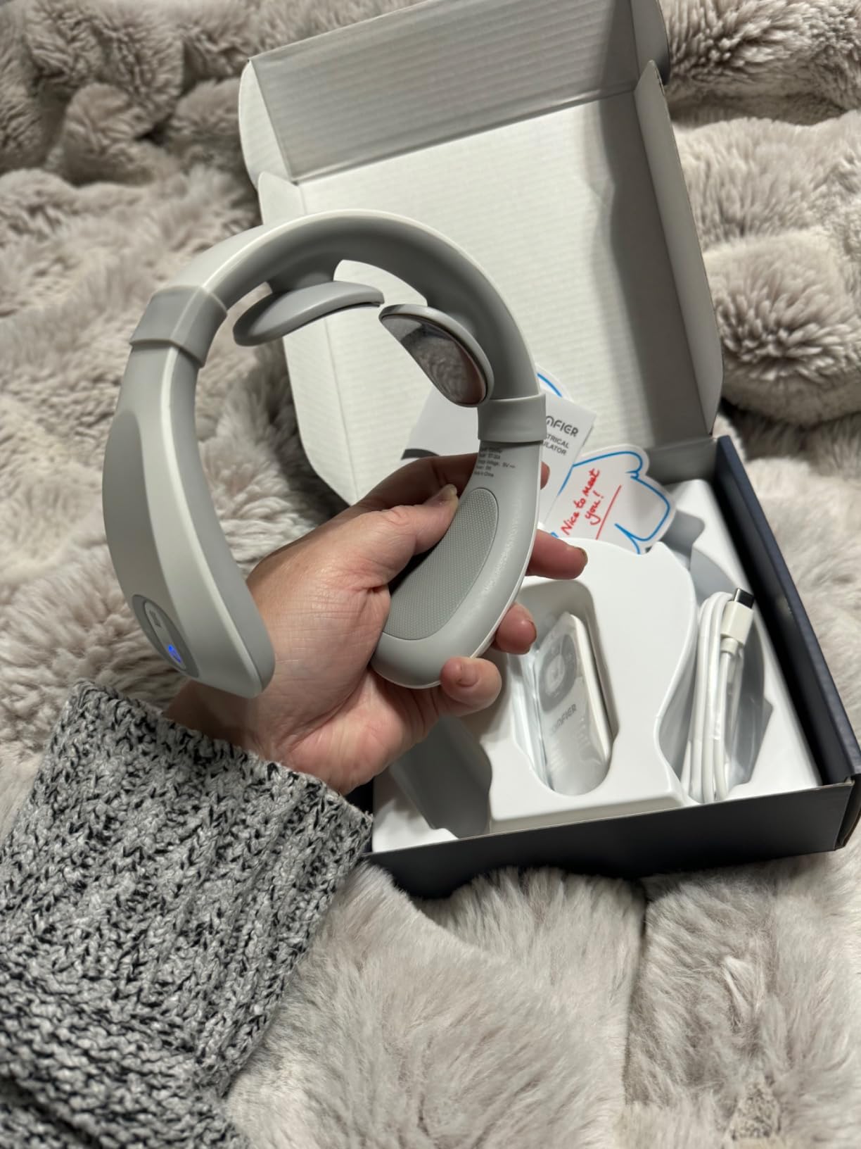 Each SmartNeck Pro comes with the main device, a USB charging cable, and a detailed user manual. Everything is packed in a premium box designed for protection and gifting. You’ll have everything you need to start your first relaxation session right out of the box.