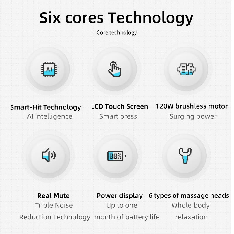 • 6 Interchangeable Heads – Designed for every muscle group and need.
